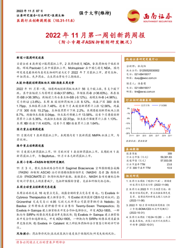 【西南证券】【20221107】医药行业创新药周报:2022年11月第一周创新药周报(附小专题_FASN抑制剂研发概况)-20页