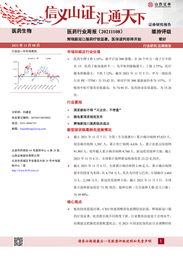 【山西证券】【20211108】医药行业周报:辉瑞新冠口服药疗效显著,医保谈判即将开始-9页