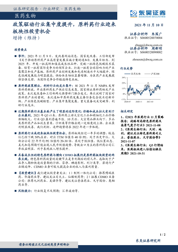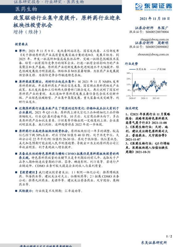 【东吴证券】【20211110】政策驱动行业集中度提升,原料药行业迎来板块性投资机会-2页