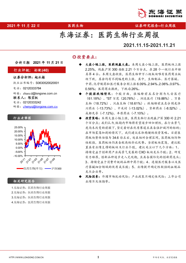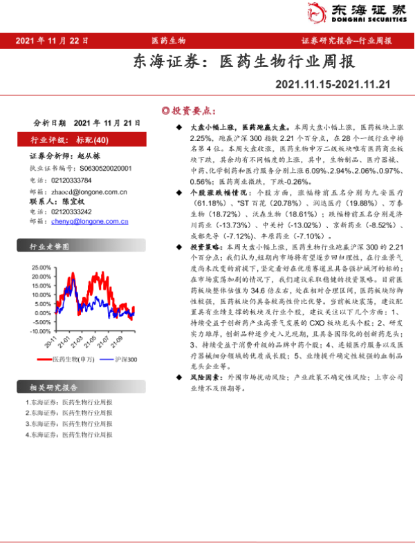 医药生物 市场表现 投资策略 行业动态 行业周报