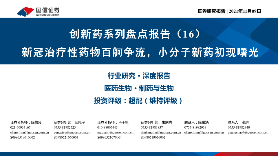 【国信证券】【20211109】新冠治疗性药物百舸争流,小分子新药初现曙光-61页