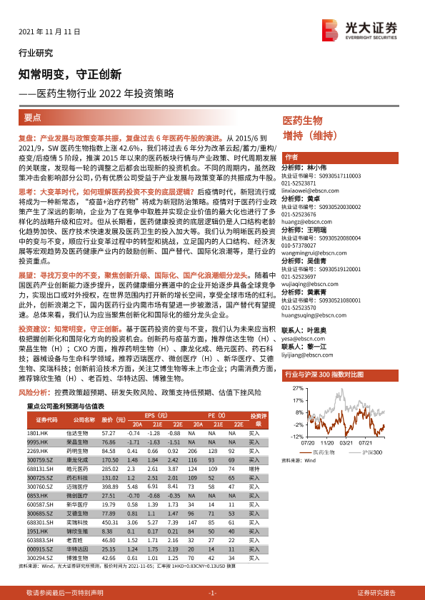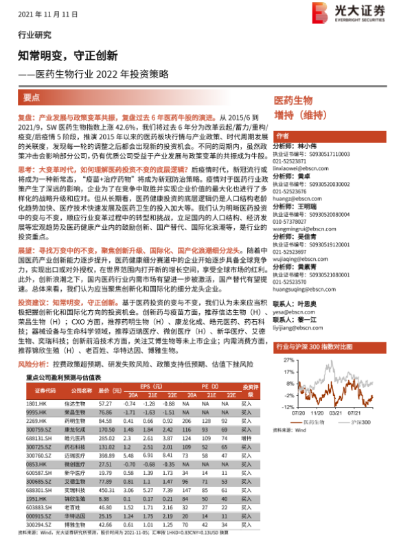 【光大证券】【20211111】医药生物行业2022年投资策略:知常明变,守正创新-89页