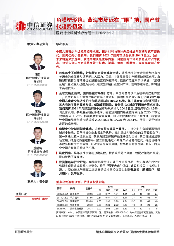 【中信证券】【20221107】医药行业眼科诊疗专题一:角膜塑形镜,蓝海市场近在“眼”前,国产替代趋势初显-62页