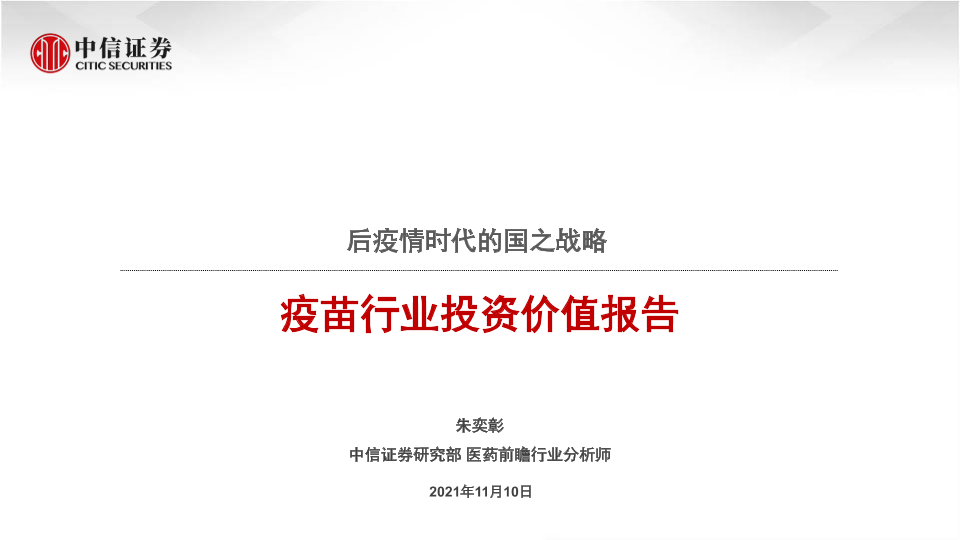 【中信证券】【20211110】后疫情时代的国之战略:疫苗行业投资价值报告-23页