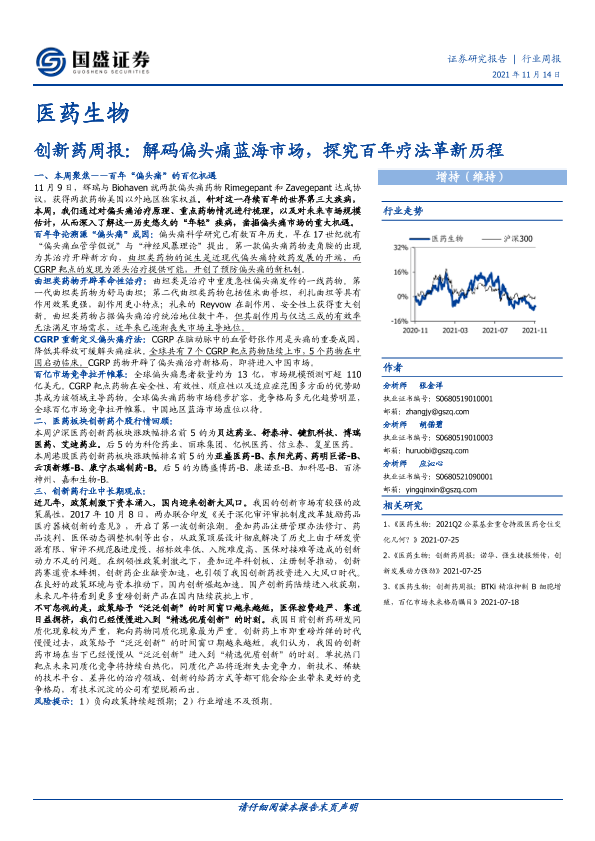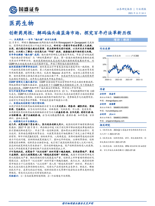 【国盛证券】【20211114】医药生物创新药周报:解码偏头痛蓝海市场,探究百年疗法革新历程-17页
