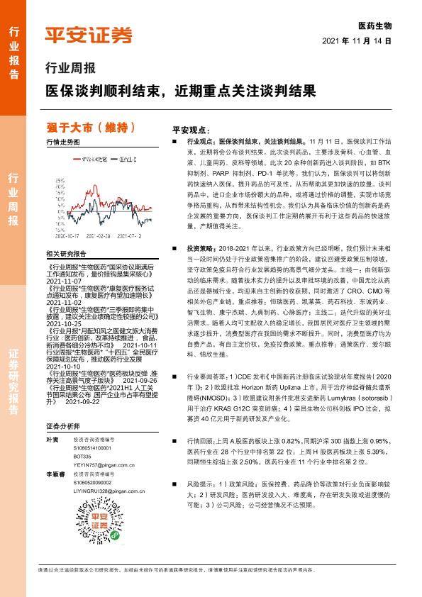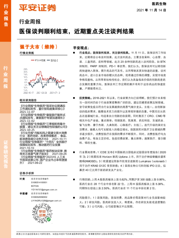 【平安证券】【20211114】医药生物行业周报:医保谈判顺利结束,近期重点关注谈判结果-5页