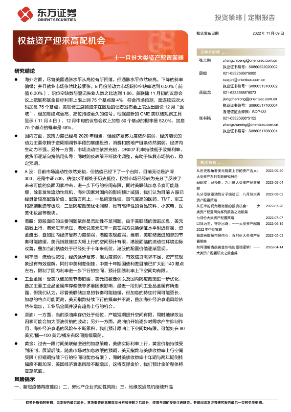 【东方证券】【20221109】十一月份大类资产配置策略:权益资产迎来高配机会-14页