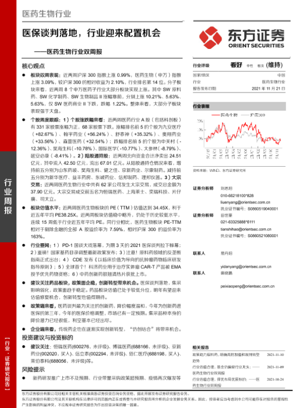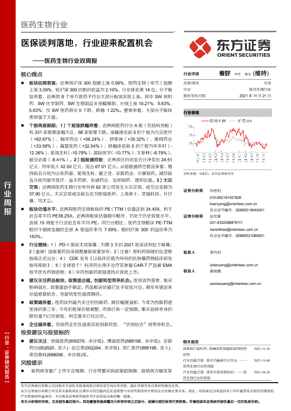 【东方证券】【20211121】医药生物行业双周报:医保谈判落地,行业迎来配置机会-16页