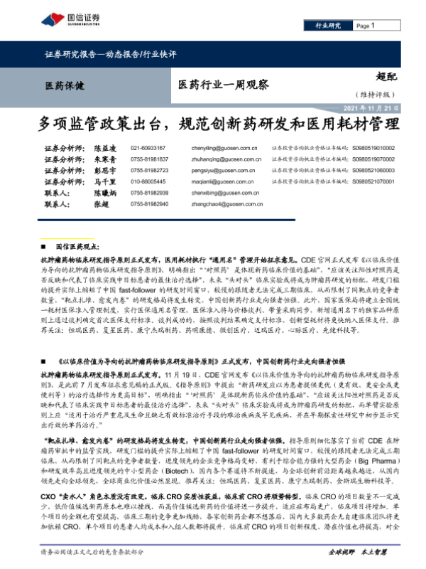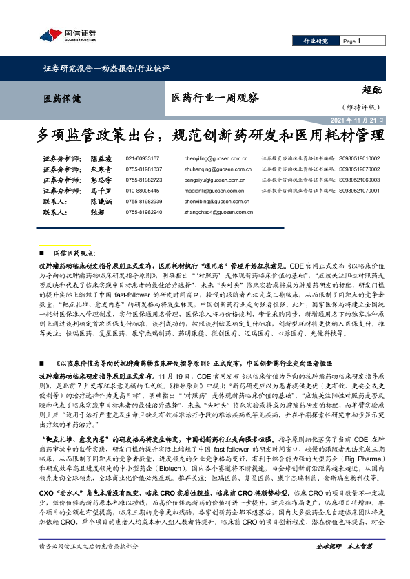 【国信证券】【20211121】医药行业一周观察:多项监管政策出台,规范创新药研发和医用耗材管理-11页