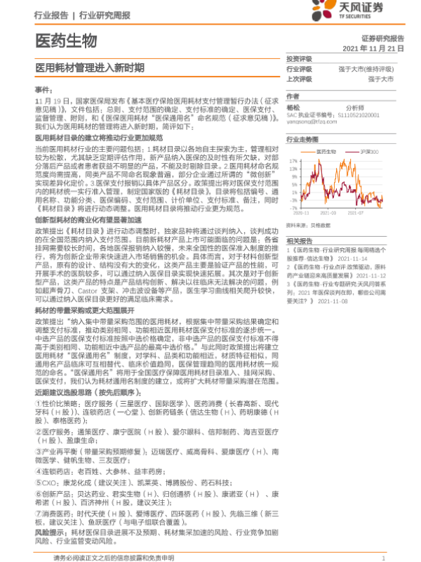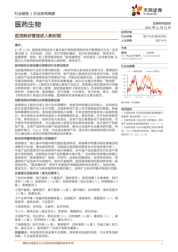 【天风证券】【20211121】医药生物:医用耗材管理进入新时期-4页