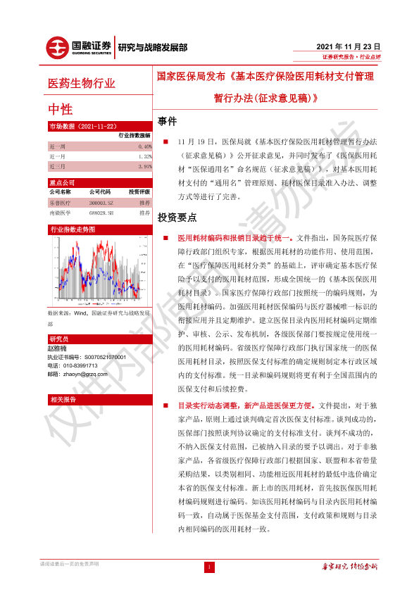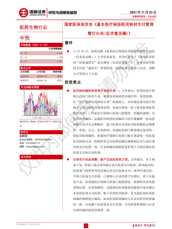 【国融证券】【20211123】国家医保局发布《基本医疗保险医用耗材支付管理暂行办法(征求意见稿)》-3页