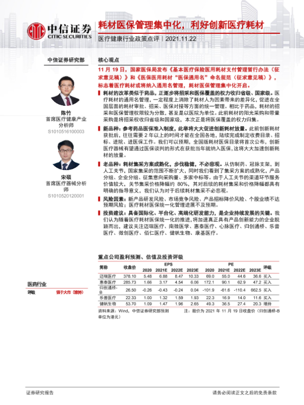 【中信证券】【20211122】医疗健康行业政策点评:耗材医保管理集中化,利好创新医疗耗材-2页