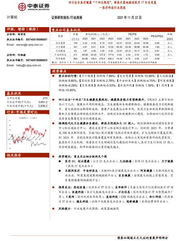 【中泰证券】【20211122】医疗科技行业周报:四川出台医疗健康‘十四五规划’,新技术落地驱动医疗IT行业发展-10页