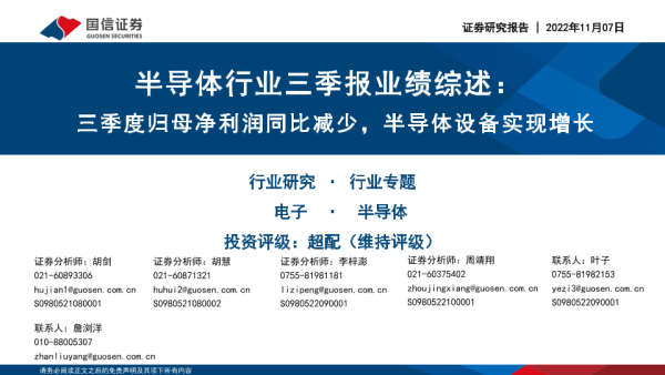 【国信证券】【20221107】半导体行业三季报业绩综述:三季度归母净利润同比减少,半导体设备实现增长-29页