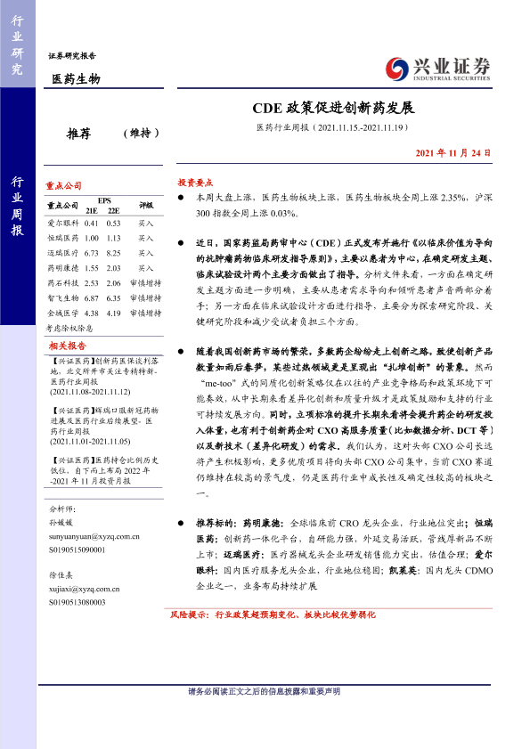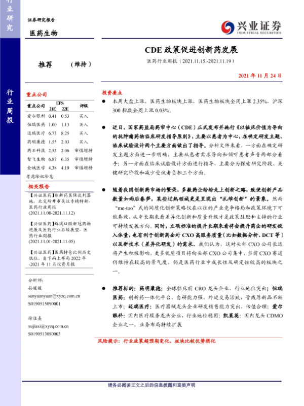 【兴业证券】【20211124】CDE政策促进创新药发展-12页