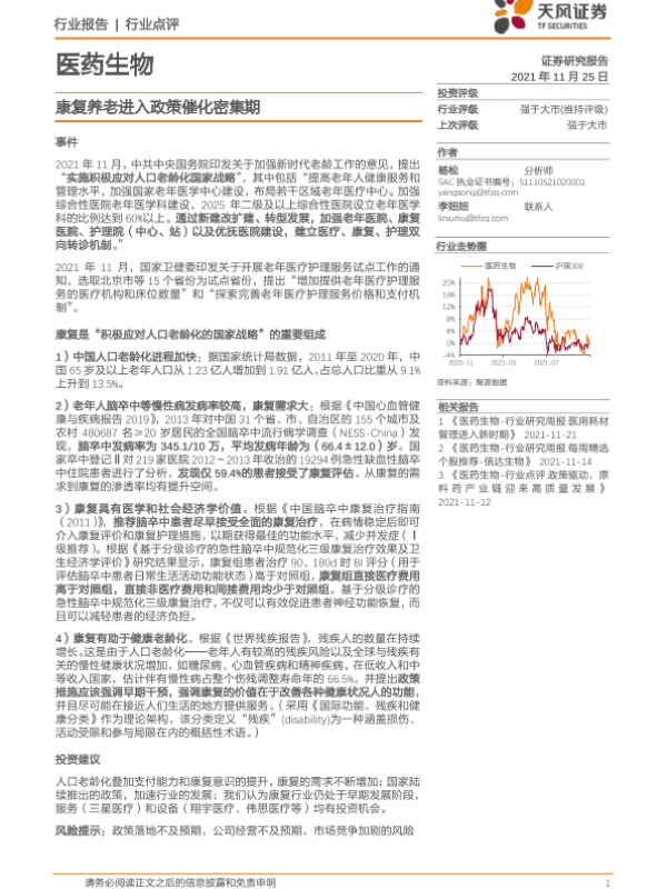【天风证券】【20211125】医药生物行业点评:康复养老进入政策催化密集期-2页