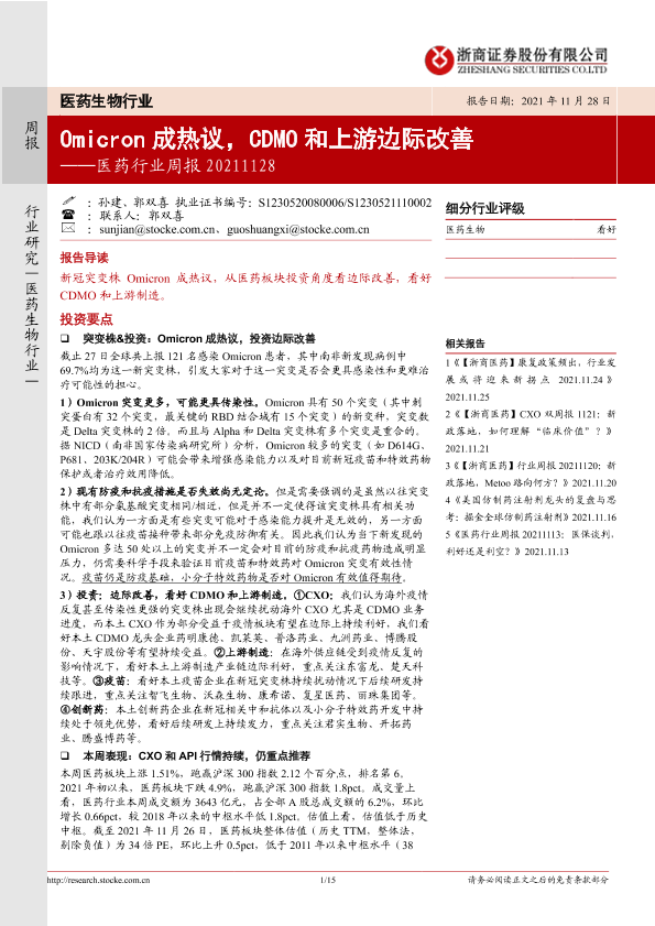 【浙商证券】【20211128】医药行业周报:Omicron成热议,CDMO和上游边际改善-15页