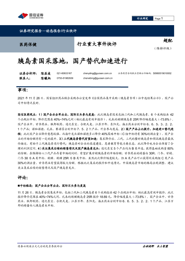 【国信证券】【20211129】医药保健行业重大事件快评:胰岛素国采落地,国产替代加速进行-7页