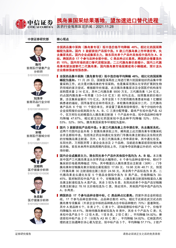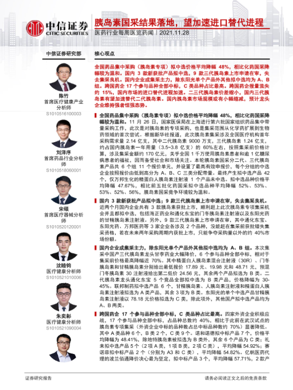 【中信证券】【20211128】医药行业每周医览药闻:胰岛素国采结果落地,望加速进口替代进程-19页
