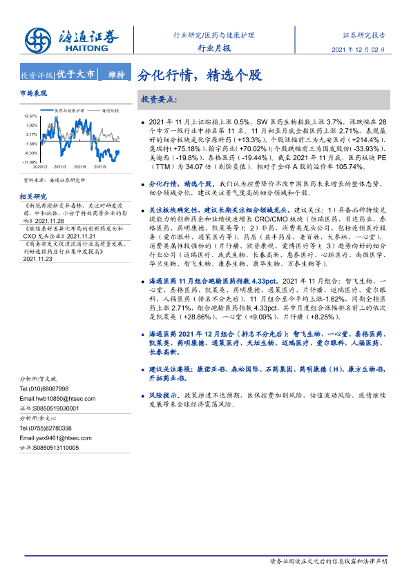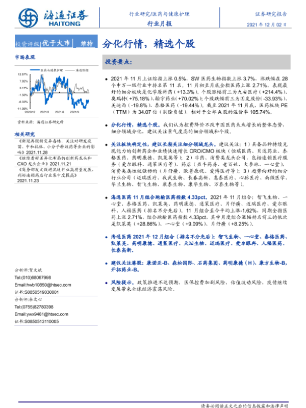 【海通证券】【20211202】医药与健康护理行业月报:分化行情,精选个股-11页