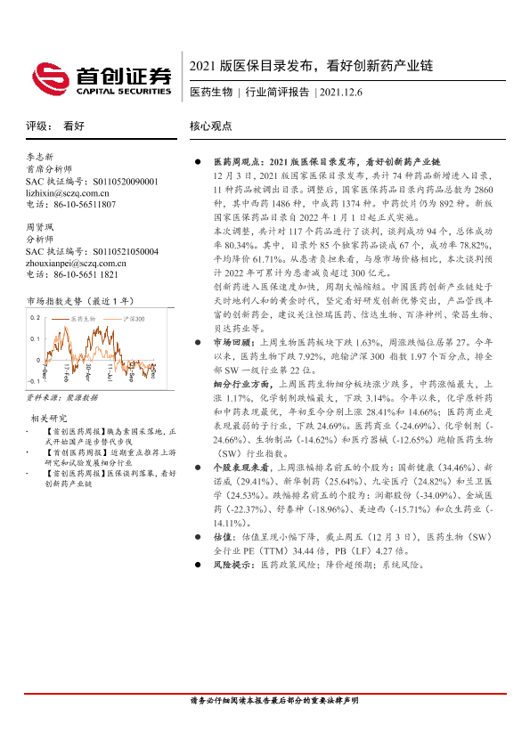 【首创证券】【20211206】2021版医保目录发布,看好创新药产业链-10页