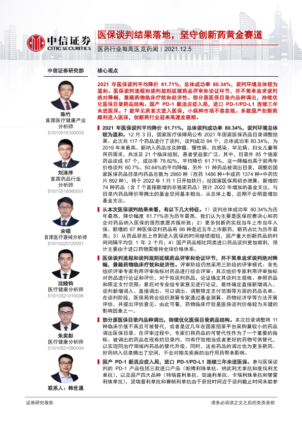 【中信证券】【20211205】医药行业每周医览药闻:医保谈判结果落地,坚守创新药黄金赛道-18页