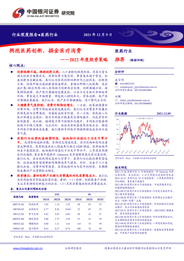 【银河证券】【20211209】医药行业2022年度投资策略:拥抱医药创新,掘金医疗消费-49页