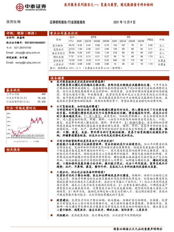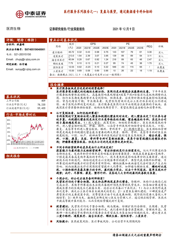 【中泰证券】【20211209】医疗服务系列报告之一:复盘与展望,透过数据看专科和标的-25页