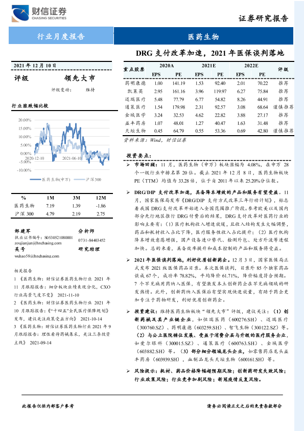 【财信证券】【20211210】医药生物行业月度报告:DRG支付改革加速,2021年医保谈判落地-18页