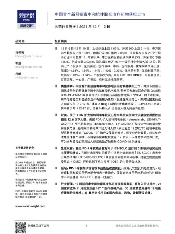 【莫尼塔研究】【20211212】中国首个新冠病毒中和抗体联合治疗药物获批上市-8页