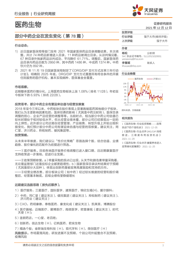 【天风证券】【20211212】医药生物行业研究周报:部分中药企业在发生变化-14页