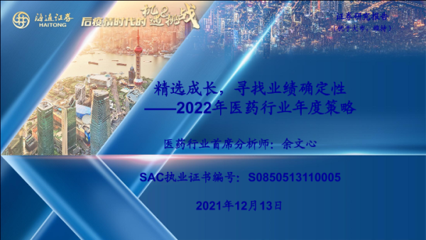 【海通证券】【20211213】2022年医药行业年度策略:精选成长,寻找业绩确定性-44页