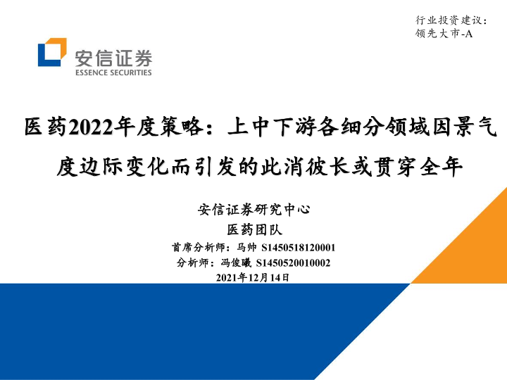 【安信证券】【20211214】医药2022年度策略:上中下游各细分领域因景气度边际变化而引发的此消彼长或贯穿全年-76页