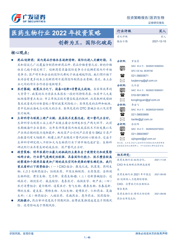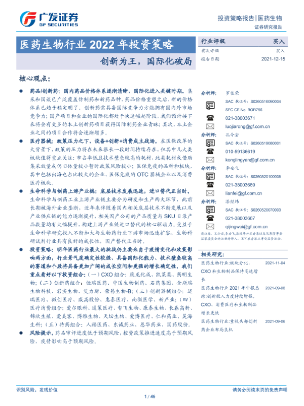 【广发证券】【20211215】医药生物行业2022年投资策略:创新为王,国际化破局-46页