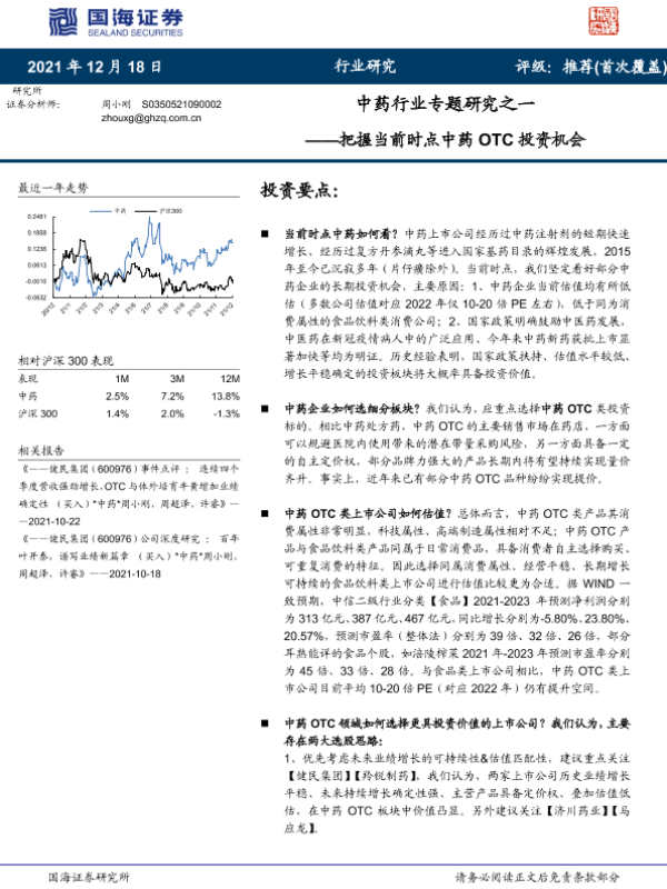 【国海证券】【20211218】中药行业专题研究之一:把握当前时点中药OTC投资机会-5页