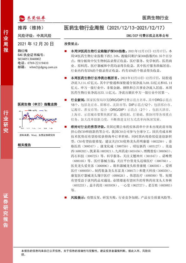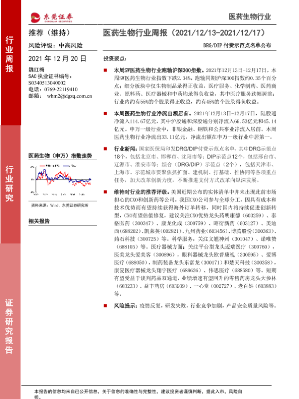 【东莞证券】【20211220】医药生物行业周报:DRG DIP付费示范点名单公布-9页