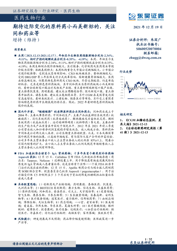 【东吴证券】【20211219】期待边际变化的原料药小而美新标的,关注同和药业等-32页