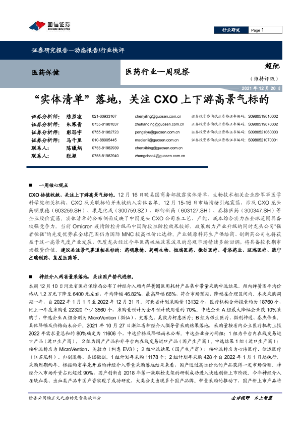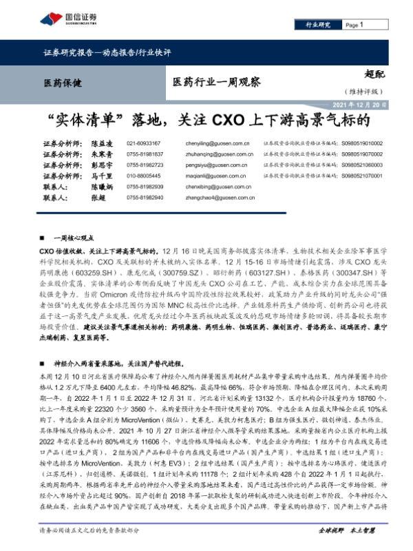 【国信证券】【20211220】医药行业一周观察:“实体清单”落地,关注CXO上下游高景气标的-12页