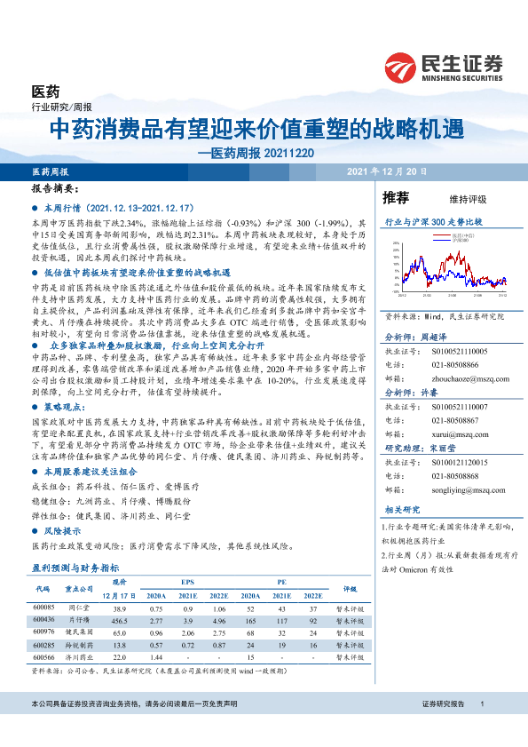 【民生证券】【20211220】中药消费品有望迎来价值重塑的战略机遇-11页