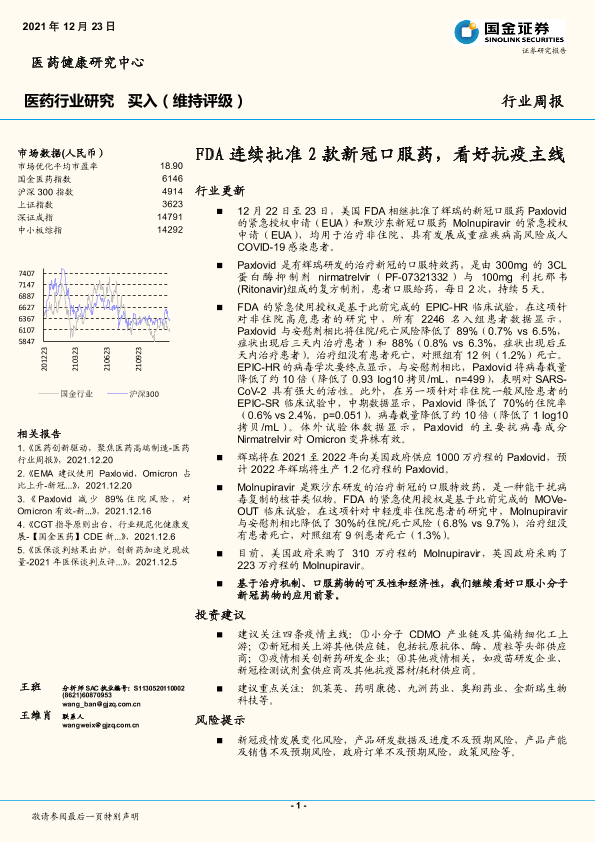 【国金证券】【20211223】FDA连续批准2款新冠口服药,看好抗疫主线-3页
