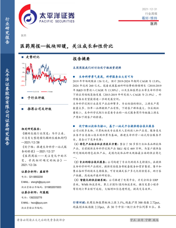 【太平洋证券】【20211231】医药周报—板块回暖,关注成长和性价比-16页