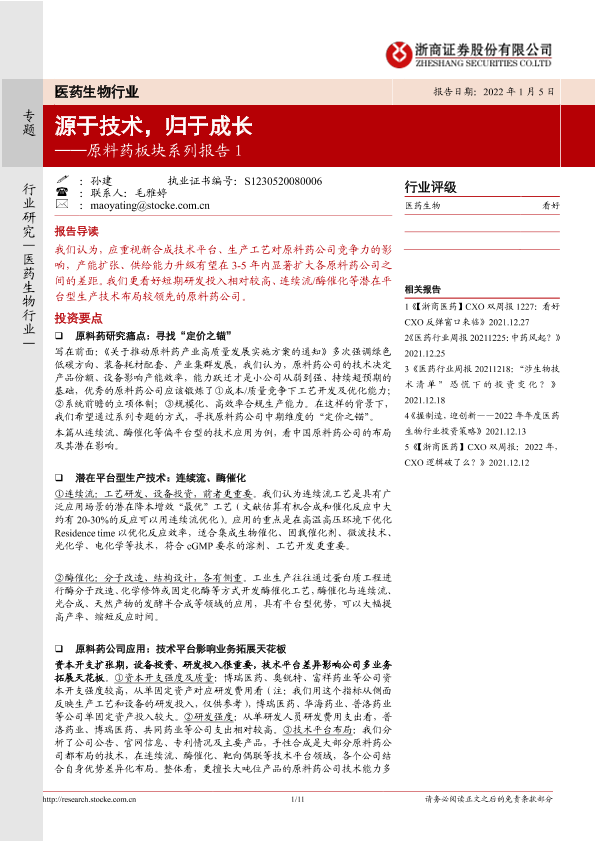 【浙商证券】【20220105】医药生物行业:原料药板块系列报告1:源于技术,归于成长-11页