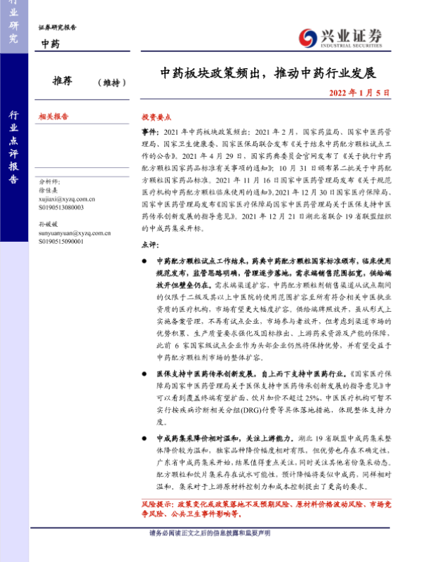 【兴业证券】【20220105】中药板块政策频出,推动中药行业发展-6页