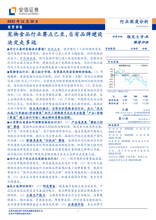 【安信证券】【20221110】商贸零售行业深度分析:宠物食品行业赛点已至,自有品牌建设决定走多远-31页