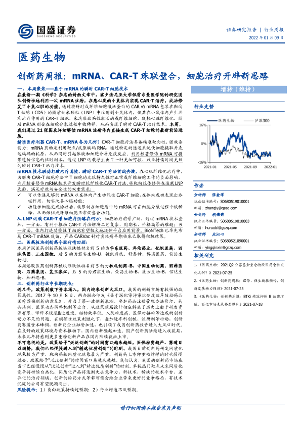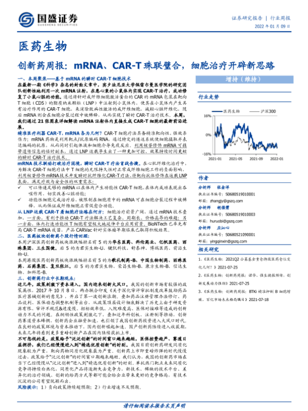【国盛证券】【20220109】医药生物创新药周报:mRNA、CAR-T珠联璧合,细胞治疗开辟新思路-16页