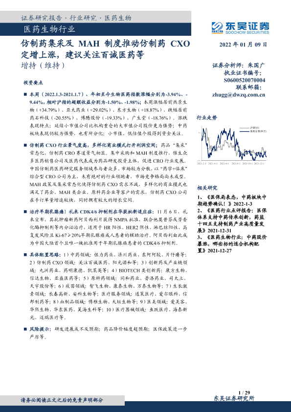 【东吴证券】【20220109】仿制药集采及MAH制度推动仿制药CXO定增上涨,建议关注百诚医药等-29页
