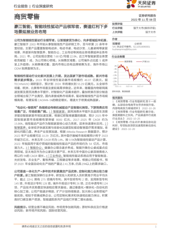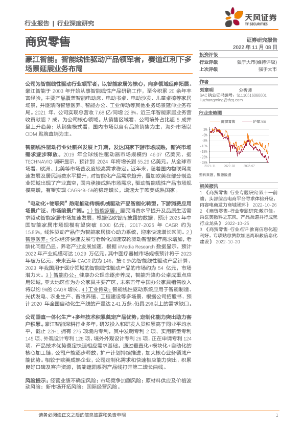 【天风证券】【20221108】商贸零售行业深度研究:豪江智能:智能线性驱动产品领军者,赛道红利下多场景延展业务布局-28页