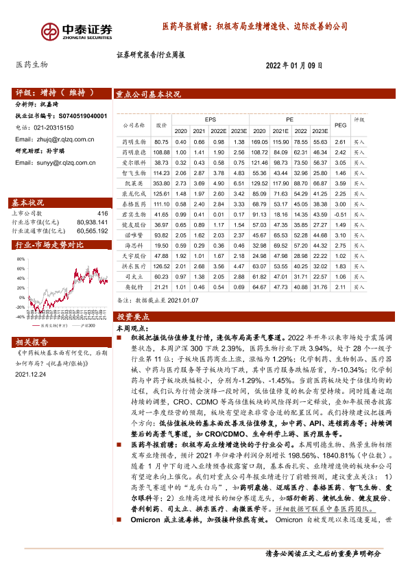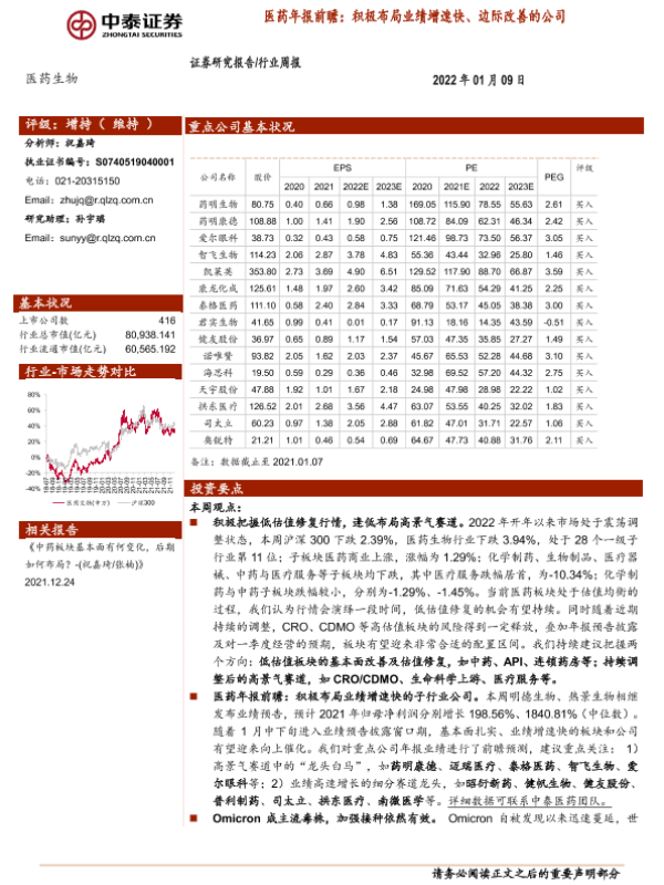 【中泰证券】【20220109】医药生物行业周报:医药年报前瞻:积极布局业绩增速快、边际改善的公司-11页