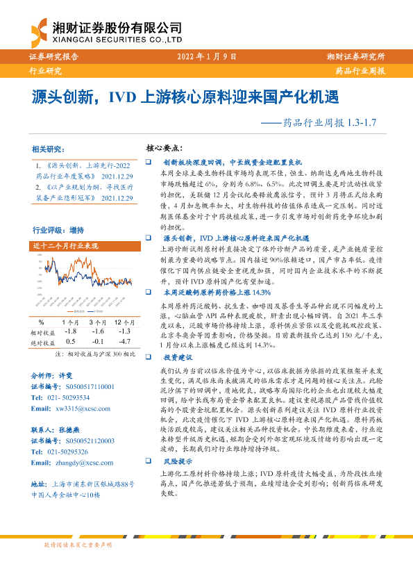 【湘财证券】【20220109】药品行业周报:源头创新,IVD上游核心原料迎来国产化机遇-14页