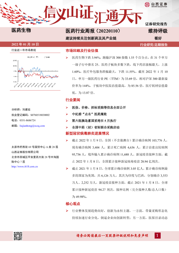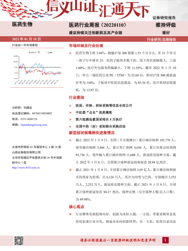 【山西证券】【20220110】医药行业周报:建议持续关注创新药及其产业链-9页